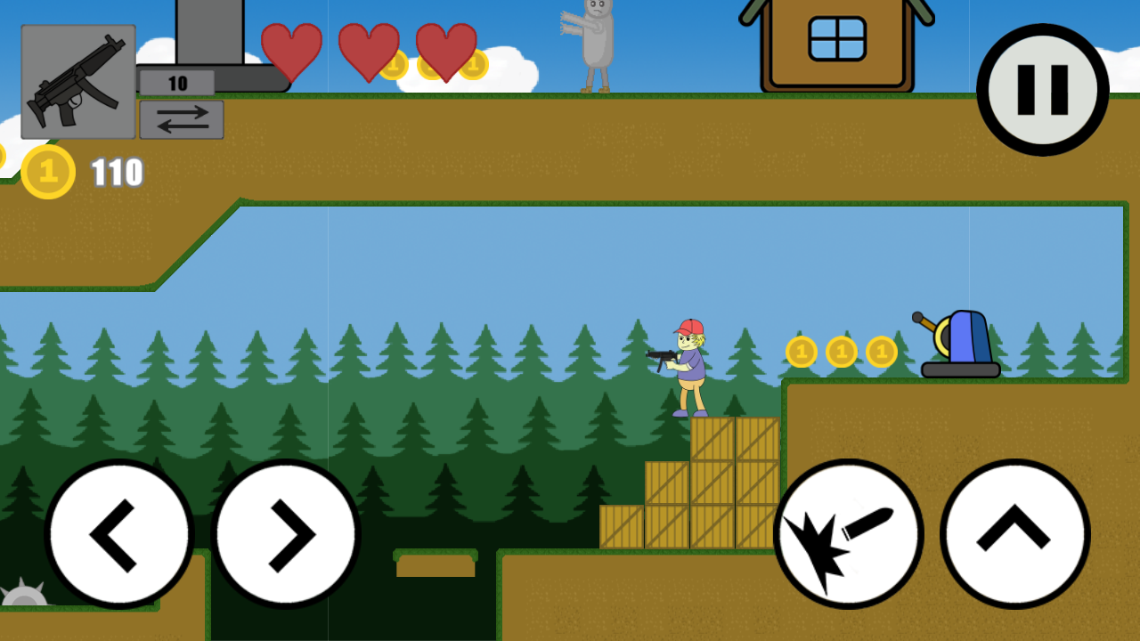 2D war of zombies! Kill all the zombies that will prevent you from passing through the levels.