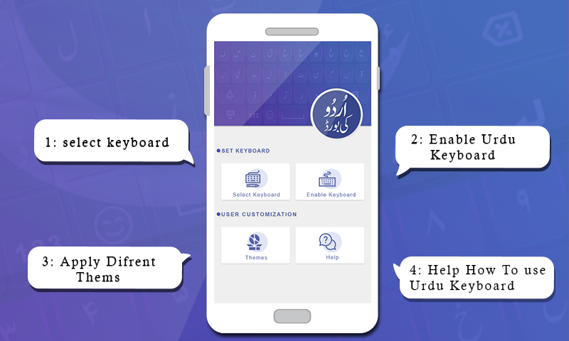 Urdu Keyboard for android-Urdu keyboard 2019has beautiful customized themes to change the look of keyboard. User can switch between different themes to choose best one from keypad.
