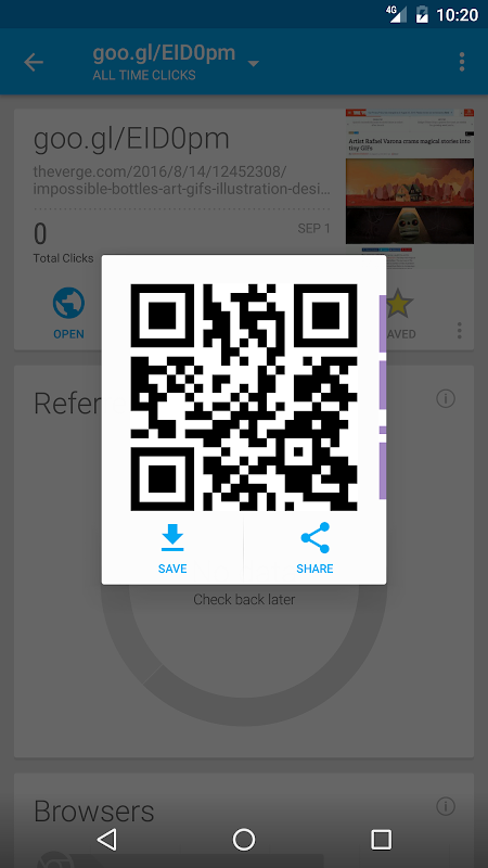 • Get colorful analytics reports of any short URL, not just yours - without leaving the app you clicked from