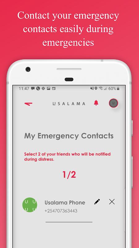 Usalama links you to help. It allows you to send emergency messages to emergency service providers and three predefined contacts of close family and friends. This makes use of GPS to capture your exact geographical location, which is relayed together with the crime scenario.