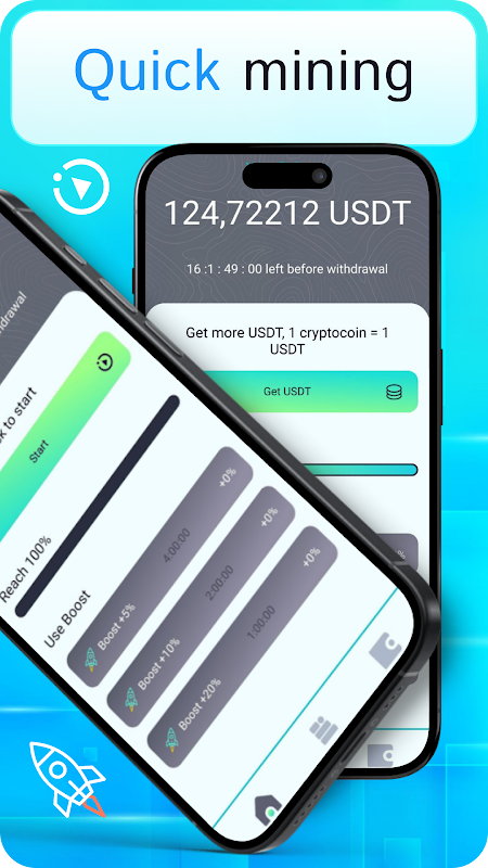 Earn USDT at your convenience. Whether you're an early adopter or new to the crypto world, our application is engineered to guide you through the mining process effortlessly. Watch your earnings grow as you mine coin, and enjoy the freedom to withdraw your earnings anytime.