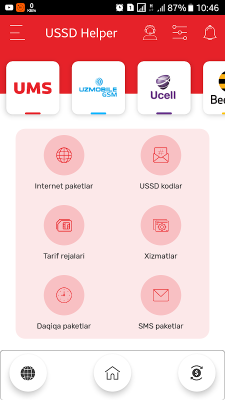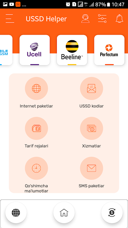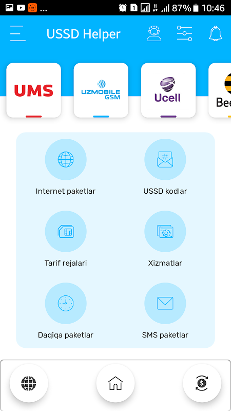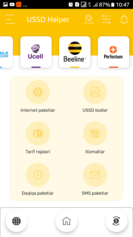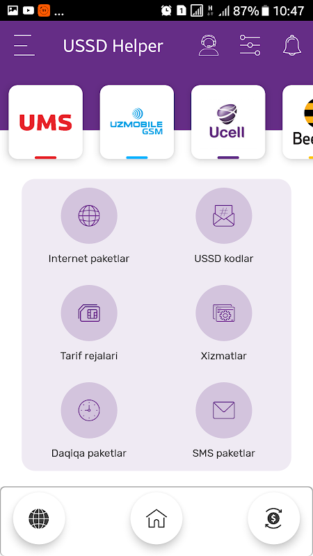 By installing the USSD Helper, you will receive answers to all the questions and the following opportunities from the cellular operators of Uzbekistan - UMS - UMS, Uzmobile - Uzmobile, Ucell - Yussel, Beeline Beeline and Perfectum - Perfectum: