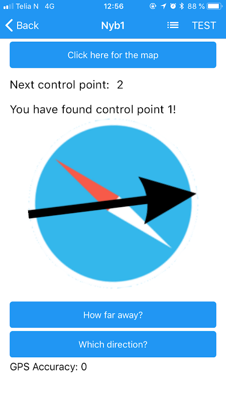 The app includes a compass so you only need the printed map and your phone to run a race.