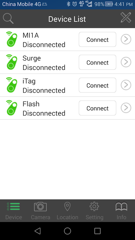 This anti lost bluetooth device can be connected to mobile phones and tablets which support Bluetooth BLE 4.0 standard. If the device is lost, you can turn on alert function which is support on the device by your phone, and the device will generate alert tone. When you enter the camera mode in this app, if you double click the button on the device, the app will take a photo. If you only tap one click, the app will record your location and show it in google map.