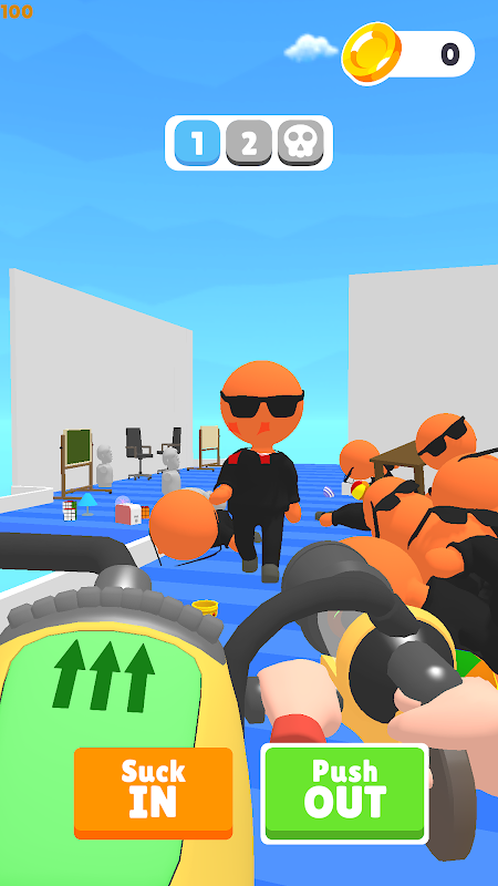 In this game you can control your character with a vacuum gun by moving your finger across the screen.
