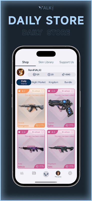 Stay ahead of the curve with real-time updates on the latest VALORANT news and daily shop rotations. From the hottest new skin releases and limited-time discounts to crucial patch notes and agent updates, VALKI keeps you informed on the go. Never miss a coveted skin or a game-changing update again!