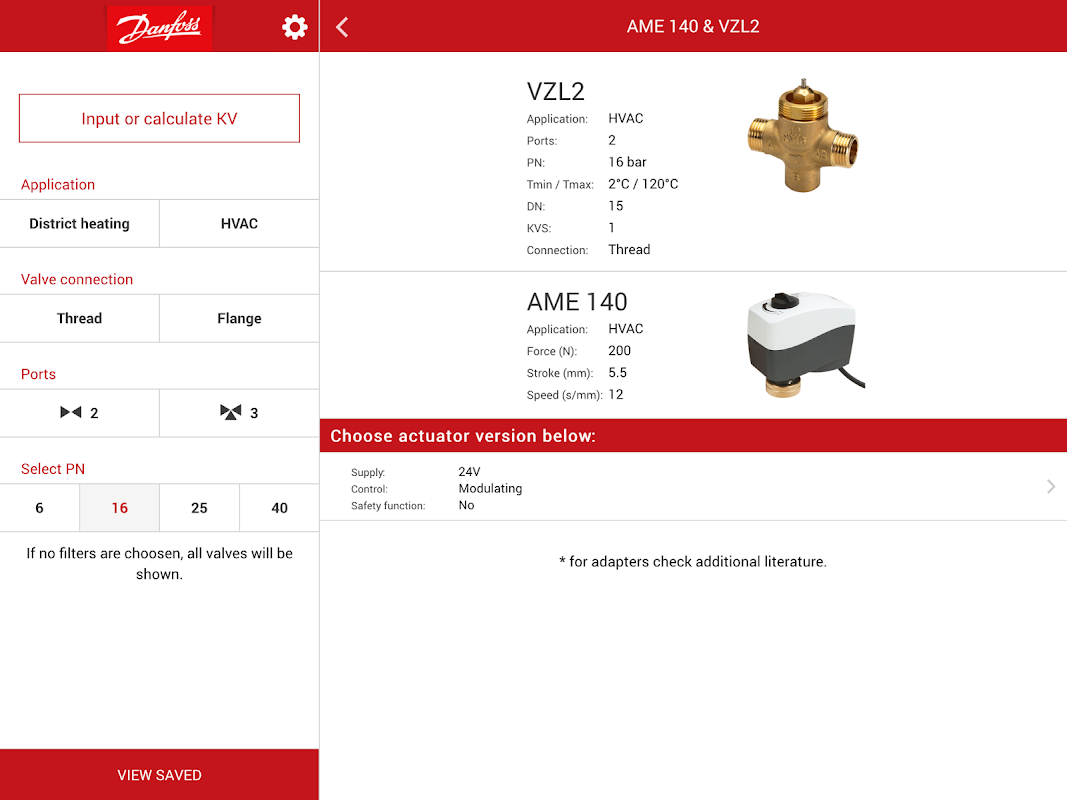 Valve ruler app is a selection tool, which will help you choose and connect the right valve and actuator for your application. You can input or calculate KV, select application type, valve connection, ports and PN for your application or simply just browse all and find the best solution for you. After you have selected your combination you can save it in the app or send it via email.