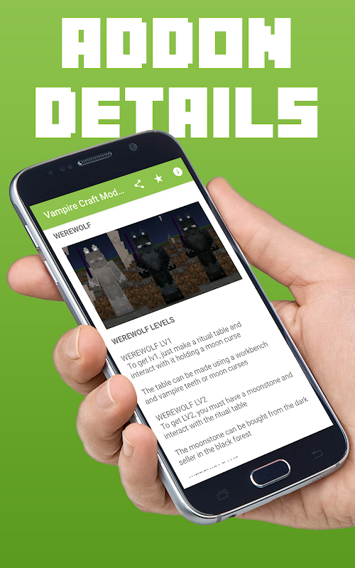 NOTE: Vampire Craft Mod for Minecraft PE application is not an official Minecraft product, not approved by or associated with Mojang.