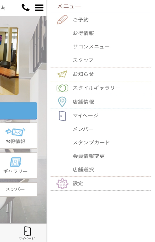▼マイページ機能で来店履歴や予約履歴がポイント保有数が確認できます。
