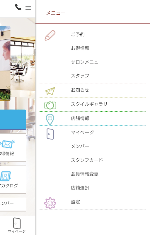 ▼マイページ機能で来店履歴や予約履歴がポイント保有数が確認できます。
