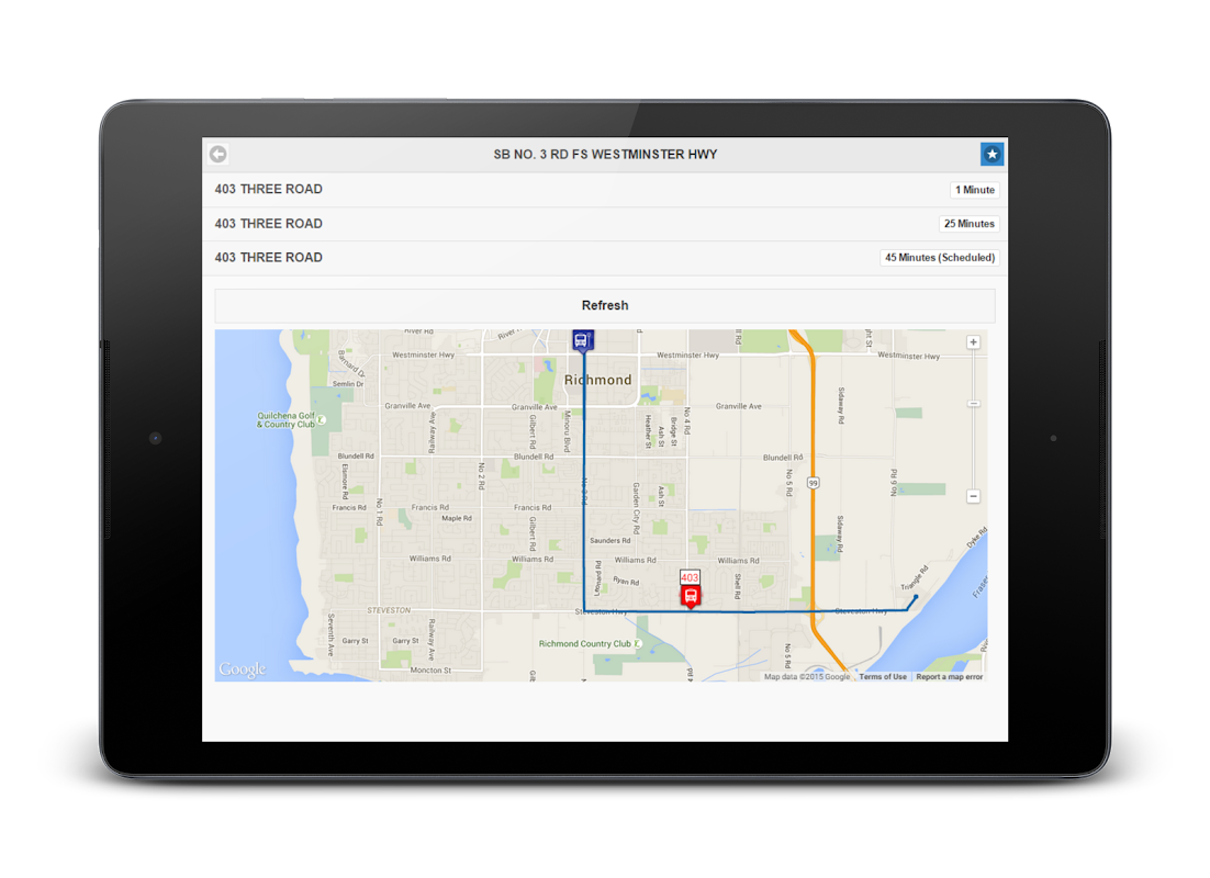 Vancouver Bus Tracker is a mobile web app that allows Vancouver bus users to view accurate arrival times based on on-board bus GPS coordinates and leverages the City of Vancouver's open data feed.