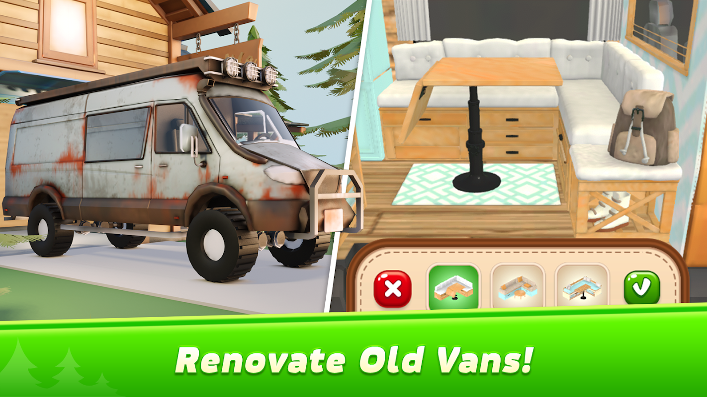 Solve match-2 puzzles, renovate and design beautiful campervans, grow your van conversion business. Your clients are counting on you to help them start their vanlife adventure!