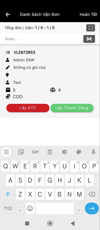 App dành cho nhân viên lấy hàng