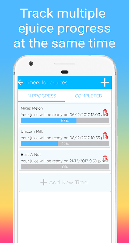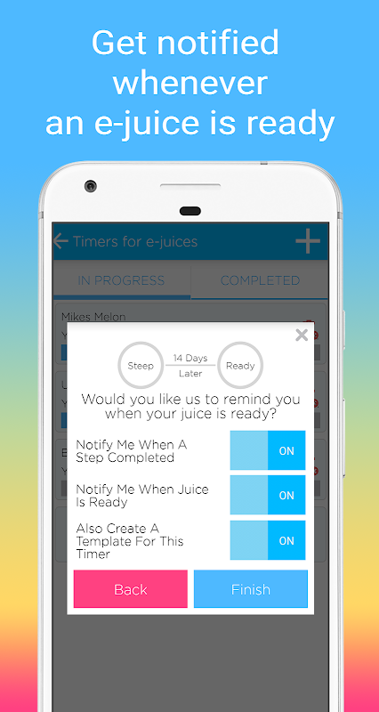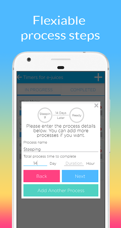 Vape Timer allows you to create your own steeping processes and lets you know when your e-juice will be ready.