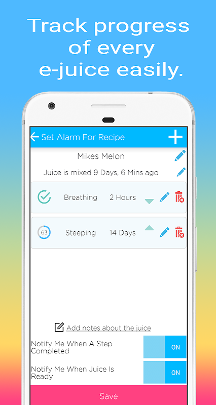 Keep track of your DIY e-juices steeping process and make great e-juices.