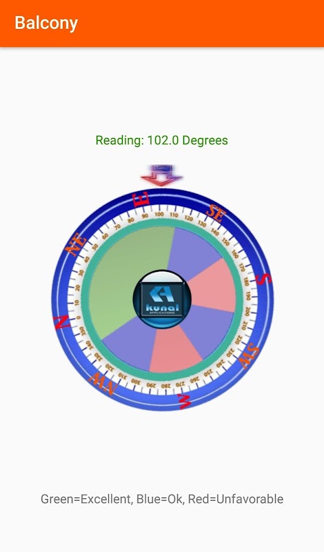** The green color in the compass indicates favorable direction for the chose place and the red color indicates unfavorable direction and blue color indicates neutral space (neither favorable nor unfavorable).