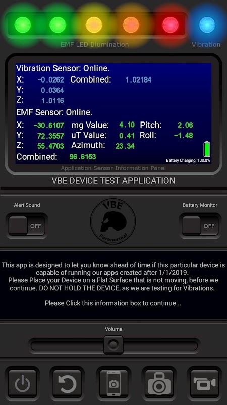 This application, tests to make sure your Device will work with our Paranormal applications that require both a Compass and Accelerometer.