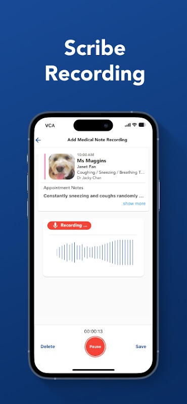 Welcome to VCA Retriever+, your all-in-one mobile companion app with VCA Animal Hospitals. Experience freedom with mobile access to at-hospital appointment management, on-demand communication with clients, and ease of uploading medical documents and notes.