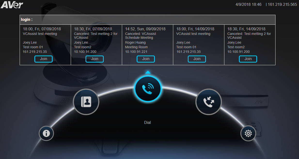 VCAssist supports connect AVer VC product to get the VC contact list, at the meantime transmit the scheduling meeting of Outlook or Google Calendar into the VC systems. You just One-Click to join the scheduling meeting and fully control the VC system. VCAssist provides the Best video conference experience for your business.