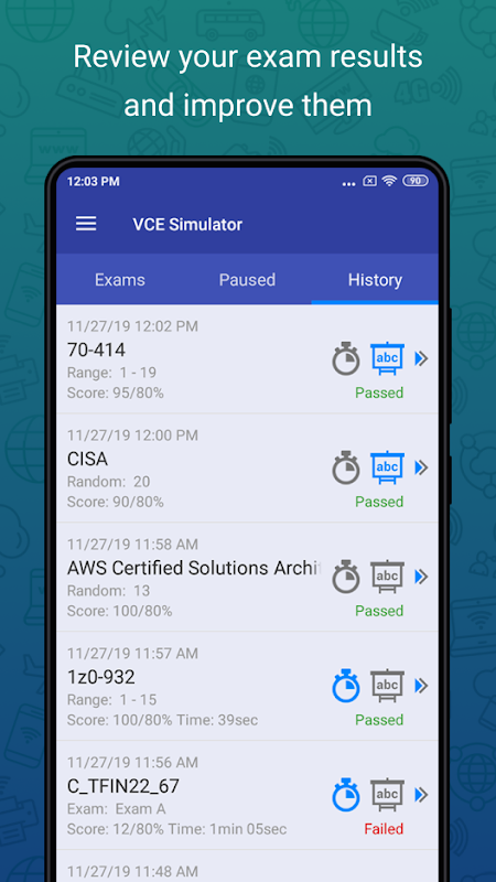 This is an Android version of popular test taking application VCE Exam Simulator. It allows you to take tests from .vce files on the go.