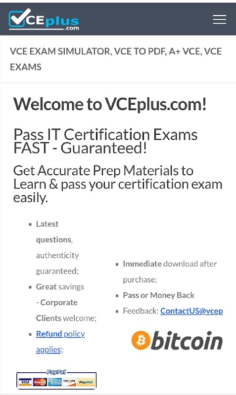 Welcome to VCEPlus, a world-class web portal designed to help IT pros advance their careers. We provide unbiased, expert-crafted content & interactive resources to guide you through every stage of your IT career - from career path and IT certification research, through building a learning plan and choosing a technical training provider, to job search and career advancement strategy.