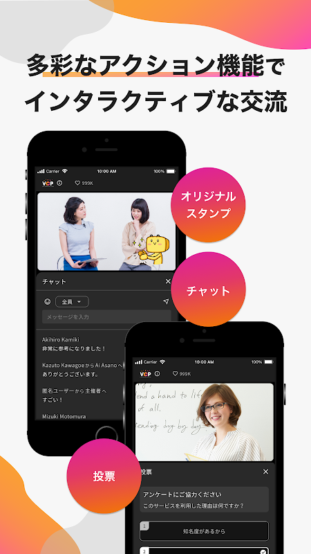 "VCP (V-CUBE Communication Platform)" is a distribution and call application that realizes all kinds of live communication.