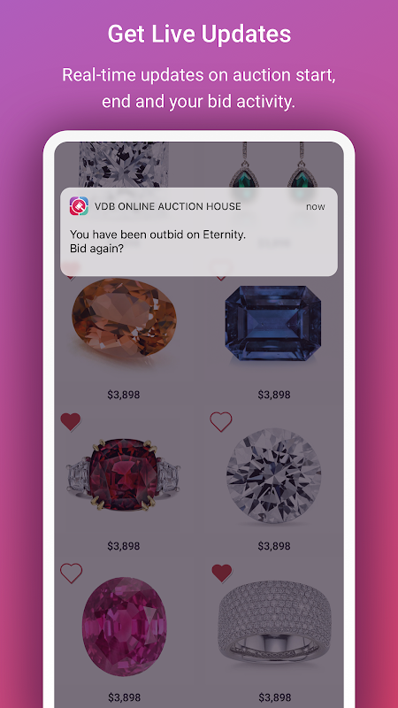Retailers: Never miss an important diamond auction or lab-grown diamond auction again. The VDB Online Auction House is the app for people looking for excellent prices on diamonds and jewelry. Purchasing jewels at auction will typically result in purchasing fine goods from 20% to 30% off.