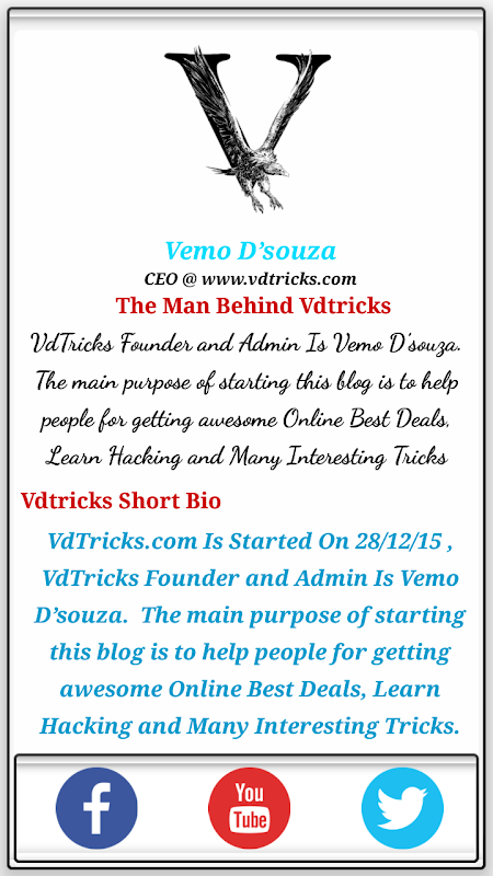 VdTricks Is The One Of The Best Hacking And Recharge Portal, The Owner/Admin Of Vdtricks is Vemo D'souza