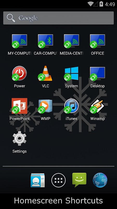 Quick access to remote power commands including shutdown, sleep, hibernate, restart and lock. Also monitor your computers power consumption with a battery meter. Visual indication of whether your computer is running off mains power, battery or UPS. Turn your computers monitor on or off remotely.