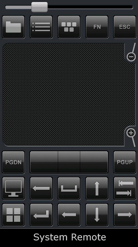 A universal PC remote control with keyboard, mouse, zoom, windows shortcut keys, remote volume and file browser remotes.