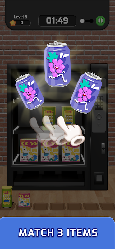 Snack & Match! Vending Machine Match 3D is here to spread the fun !! Tap on the machine to merge 3 identical items. Match them all to complete the level, beat the timer and unlock more fun and rewarding levels! How fast can you match?