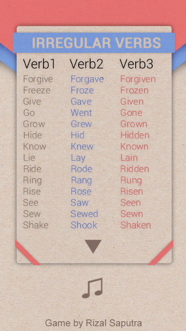 Pilih bentuk kata Irregular Verbs yang benar, kata Irregular Verbs akan teracak dari: