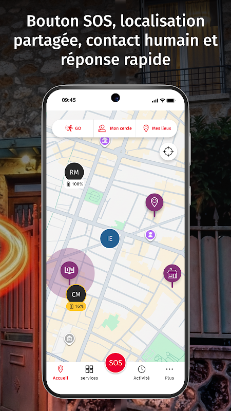 Verisure Guardian is a personal safety and assistance app with an SOS button, family geolocation, and 24/7 Verisure Assistance agent intervention (mainland France, subject to network coverage). With a single tap, activate your SOS button, share your location with loved ones, and receive human support while you're out and about. Enjoy 24/7 protection, whether you're out and about or at home.