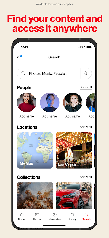 - Organize and find your photos by labeling friends and family using Tag and Search.