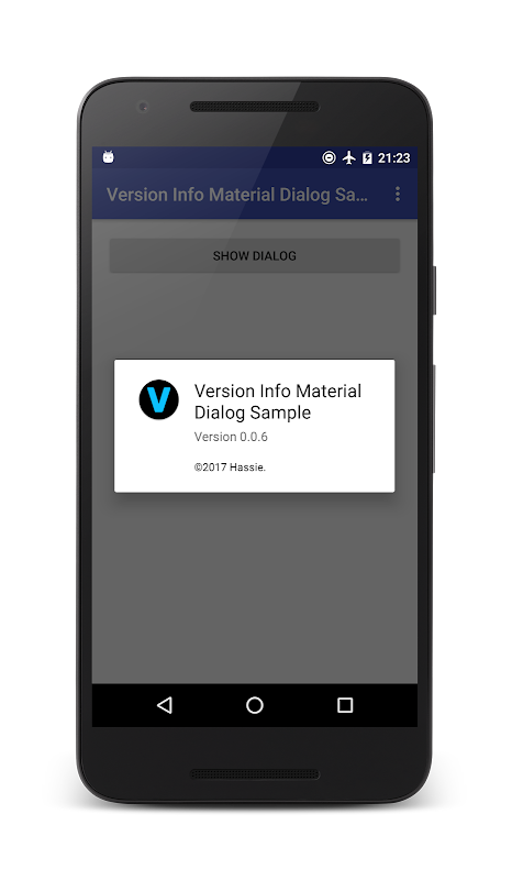 This Android library generates a material dialog with version info for your app; using the same style as Google's Android apps version info dialogs. The dialog shows the app icon, app name, version name and copyright notice.