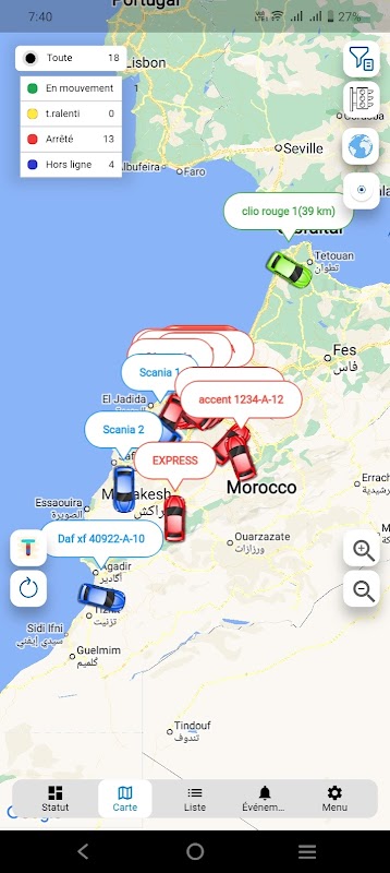 Monitor vehicles with a list and map view