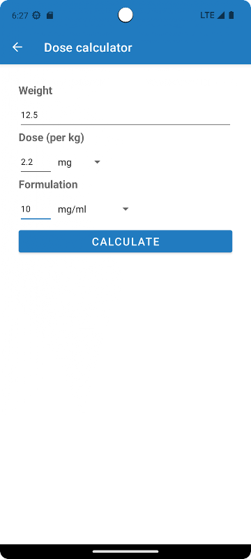 It allows you to perform eleven different calculations including drug doses, fluid and energy requirements and infusions. It also performs conversions of many units including temperatures and between SI units and conventional units. A full list of the features and calculators can be found here: https://vetapps.co.uk/Version_Comparison.