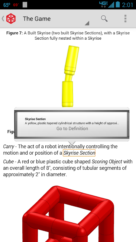 The VEX Skyrise App is the ideal competition companion for teams, spectators, and event planners involved in the 2014-2015 VEX Robotics Competition season. The app provides quick access to the official game manual with search capability, including in-app alerts when new versions of the manual are released. Additionally, a helpful scoring calculator for Skyrise is provided for use during practice matches or while evaluating game strategies.