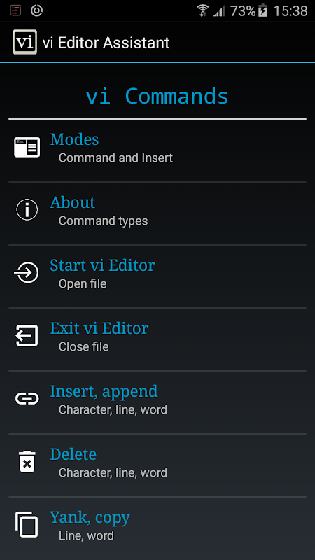 This app is a easy to use, quick reference guide to vi editor.