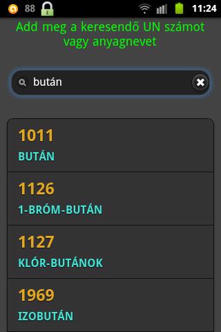 Az "UN szám és név alapján" történő kereséshez, továbbá ezen keresés találatainak megjelenítéséhez aktív internet kapcsolat szükséges!