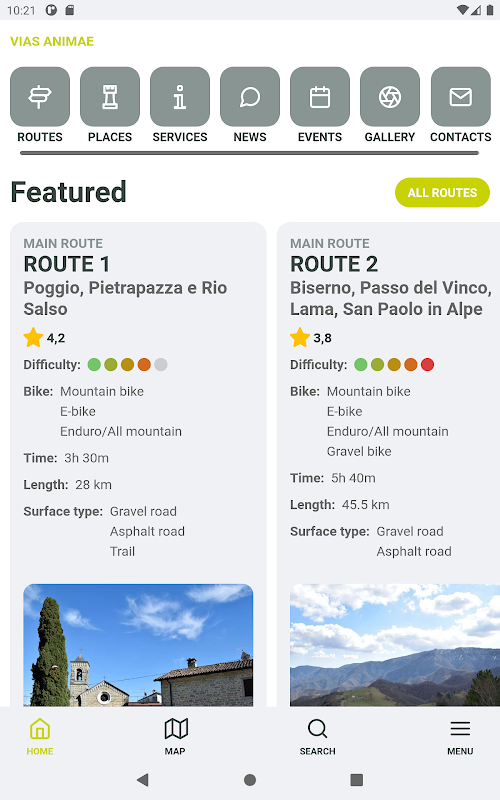 The App accompanies you step by step along the 16 routes present, describing the way to follow, the difficulties and the duration...but it doesn't stop there!