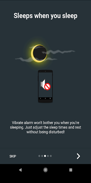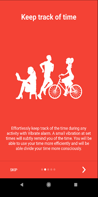 * Configure times at which Vibrate Alarm should be silent, so you won't be annoyed at night.