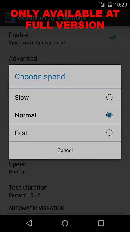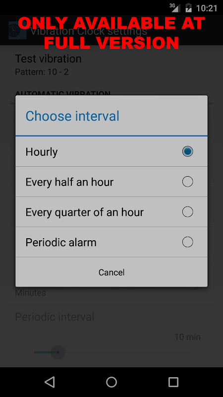 If you want to configure the vibration patterns please buy Vibration Clock (Full Version) http://market.android.com/details?id=at.idsoftware.vibrationclock