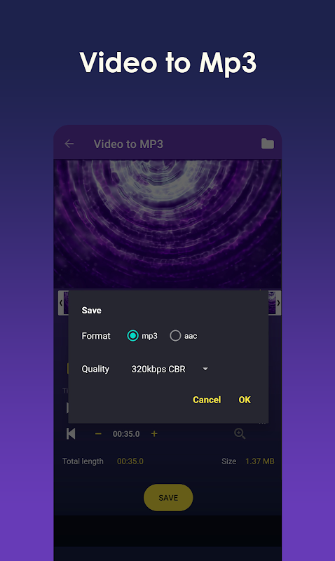 * Video to Mp3 Converter helps you to extract high quality Mp3 audio from video.