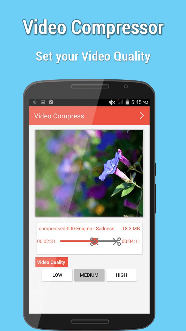 Video Compressor is very helpful app. This app will help you to compress video into small size and you can save memory.