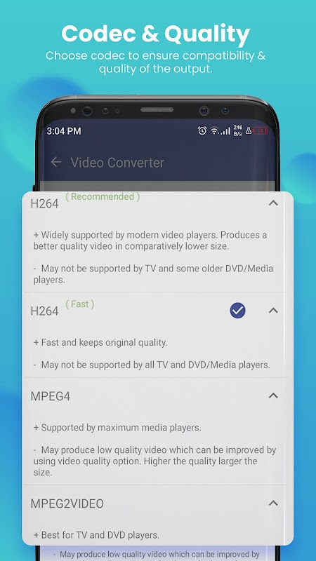 This is the best Video Converter and Compressor app in the market which provides every possible settings for Converting and compressing your video.