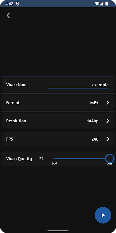 Resolution: Choose a resolution from 144p to 1440p or any custom resolution.