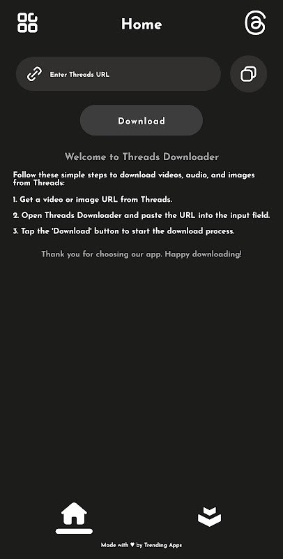 Copy the link of the desired video or photo and open Video Downloader for Threads, which will automatically download Threads files.