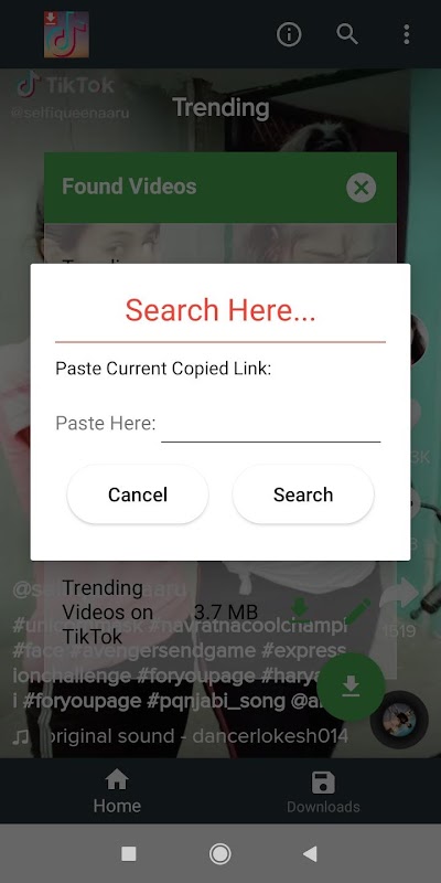 * From the search functionality of tiktok video downloader app, you can download your required tiktok video. Just copy the link of tiktok video and paste in it.