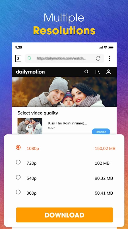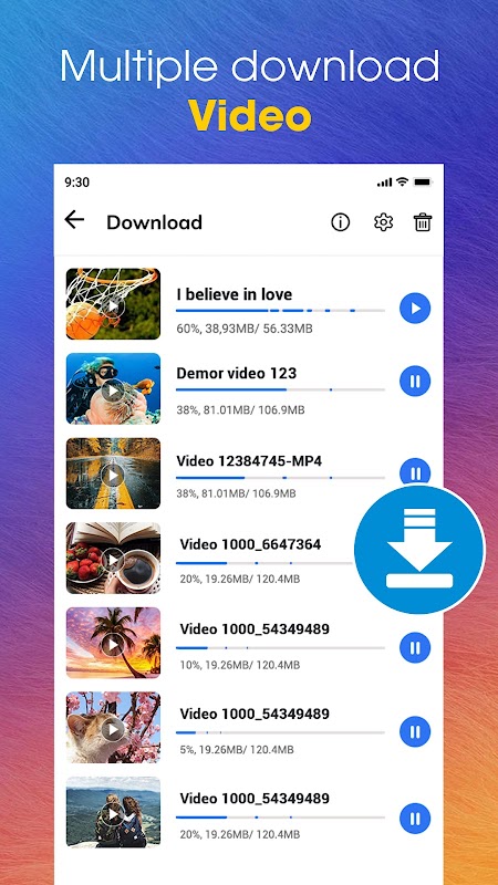 The application supports downloading full HD quality videos, which helps you download high quality videos at download speed.